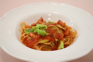 春キャベツとベーコンのトマトソース(自家製生メン)